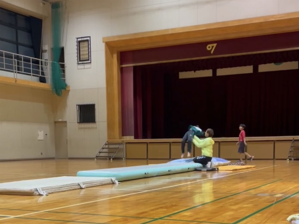 下恵土地区センターでの体育レッスンです。「色々な跳び方をしてみよう」というテーマで行いました。