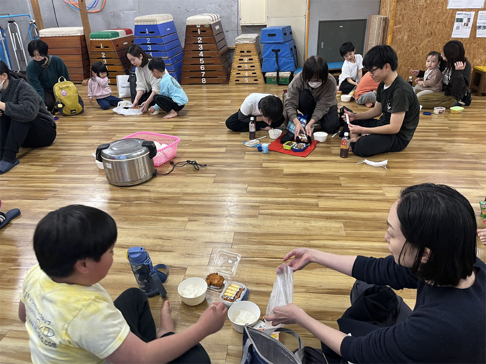 フープの中に着地するというあそびをしています!跳び箱の着地の練習でもありますが、ボディーコントロールをするのがメインです。