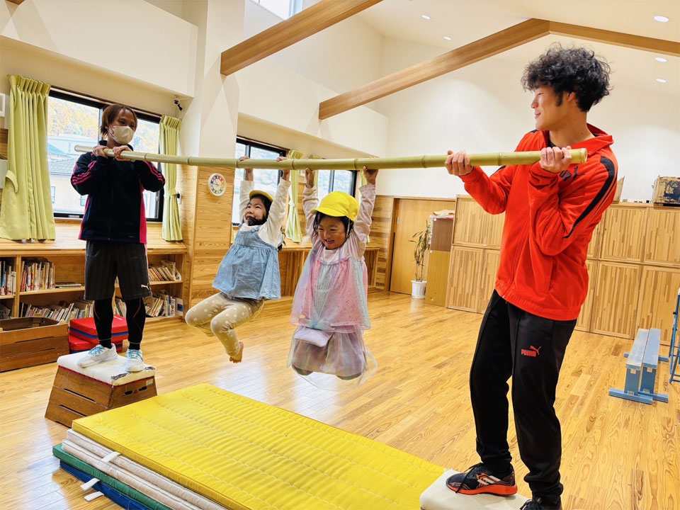 「飛び降り」「着地」「ロール」と全て基本的な動作だからこそ、子ども達は何回も取り組みたくなります。普段行わない動作が、子ども達の運動能力を高めていきます。