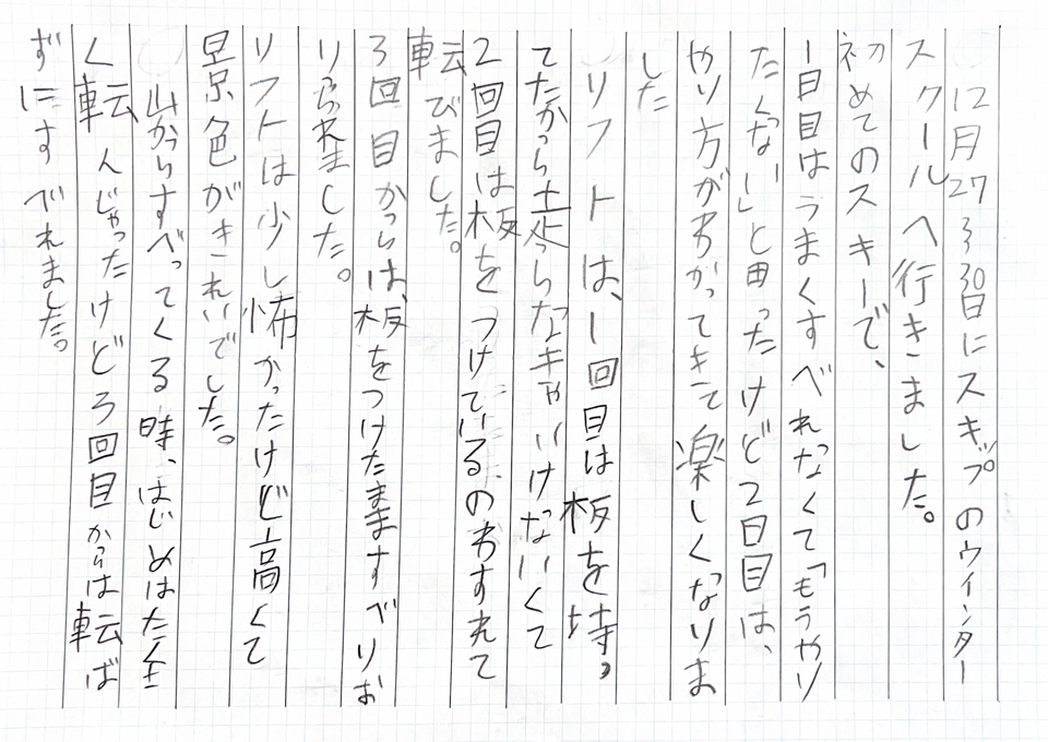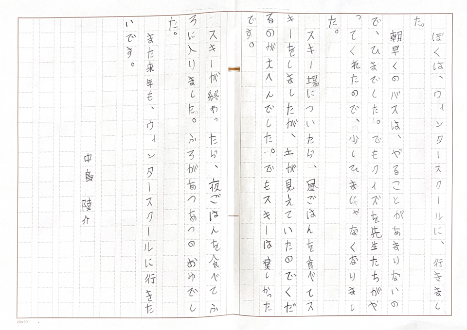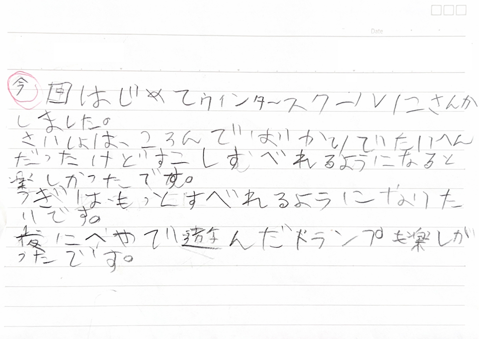 サマーキャンプに引き続き、ウィンタースクールも参加させていただきありがとうございました!夏に参加してくれた子もいて、覚えていてくれたことが嬉しかったです。