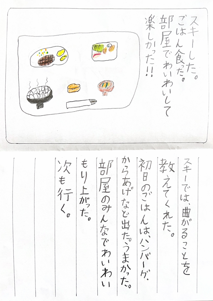 初めてスキーに挑戦したお友達も、全員一度はリフトに乗ることが出来たのは私たちも嬉しかったです。また、今年は年少から高校3年生までのお友達が参加してくれたので、大きい子が小さいお友達のフォローをしてくれた場面も印象的でした。